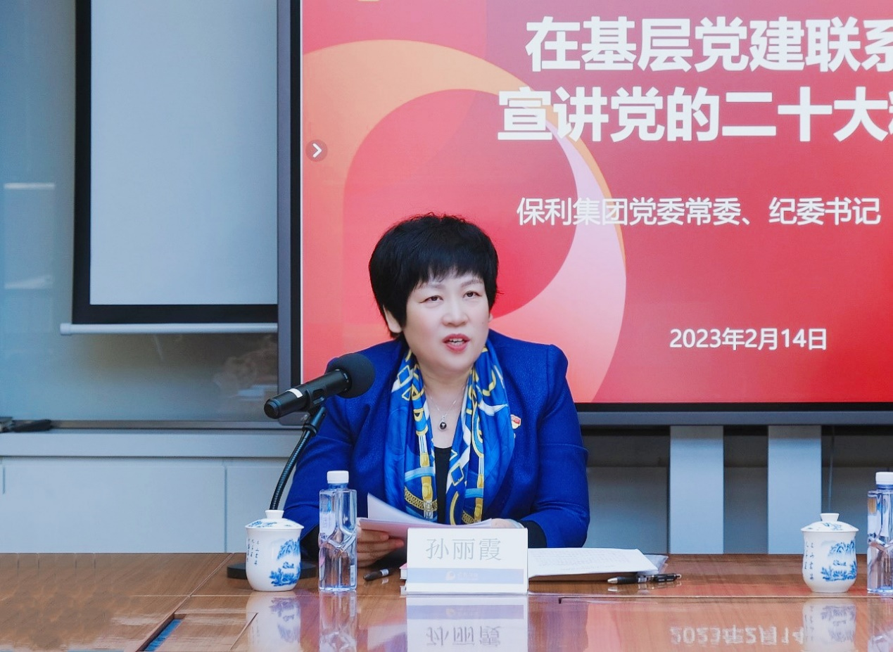 2月14日上午,孙丽霞一行来到保利华信总部,调研创新体验中心,为保利华信党委中心组及基层党建联系点党员宣讲党的二十大精神。她用“六个心”,即“伟大变革振奋人心、创新理论激荡人心、使命任务凝聚人心、人民至上温暖人心、安全发展稳定人心、自我革命赢得人心”形象解读了二十大报告的主要内容;用“五个新”,即“理论创新的新飞跃、踔厉奋发新时代、团结奋斗新发展、国资央企新征程、全面从严治党新部署”凝练了个人学习体会。
