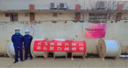 身处武汉的长飞光纤光缆股份有限公司也在火神山医院建设的第一时间迅速响应。疫情就是命令,防控就是责任。危难时刻,所有长飞人喊出了“战定不退”的响亮口号,任峰、陈瑞等十名员工面对疫情毫不退缩,主动请缨。在短短三天内,他们每天在现场施工及调度超过16个小时,总计完成布放光缆约18.6公里,熔接成端近1000芯。此外,长飞还紧急为雷神山医院、黄冈版“小汤山医院”的建设积极协调和提供物资。时间就是生命,长飞人与所有施工人员一起放弃与家人团聚的机会,不惜一切代价与时间赛跑,保障了上述医院的通信网络建设,为抗击疫情的斗争做出了积极贡献。他们是这场没有硝烟的战争中的最美逆行者、最美通信人。