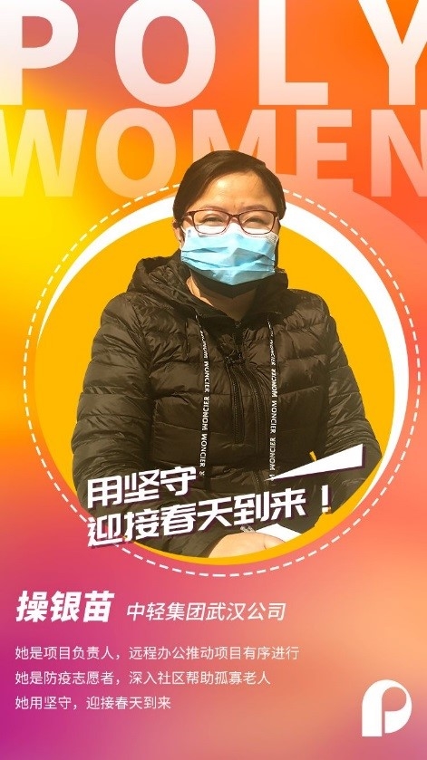 In the early spring of this year, a sudden outbreak of novel coronavirus pneumonia spread rapidly from the city of Wuhan to the rest of the Hubei province, and even across the whole country. Facing the epidemic, the subsidiaries of Poly Group in Wuhan moved quickly in accordance with the general guideline of “fighting the epidemic, safeguarding people’s livelihood and protecting people’s safety”. In spite of danger, they had the courage to shoulder heavy responsibilities and made utmost efforts to guarantee epidemic prevention and control. In ordinary posts, they wrote a hymn to the battle against the epidemic. Among them, many are female employees.